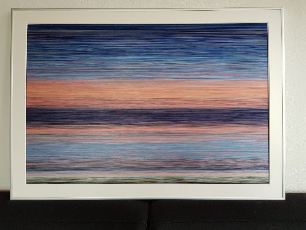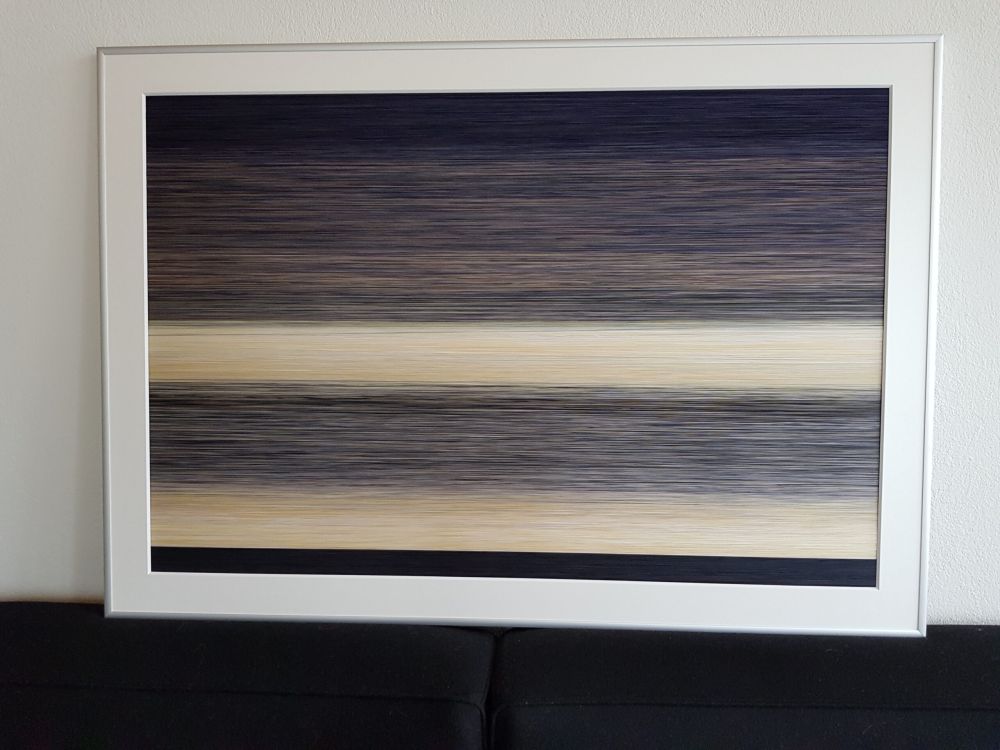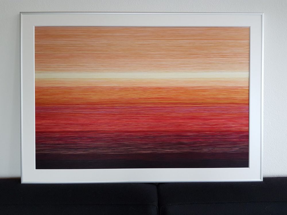 Eigene Fotografien von höchsten Punkt des Baugerüstes aus währen dem Umbau der Rathausgasse 8 in Aarau. Nach dem Brand. Farben mit Fäden übernommen und um das Rahmenglas gewickelt. Etwa 10 Fäden unterschiedlicher Farben gleichzeitig gewickelt. Die Bilder haben eine Abmessung von 70 x 100cm mit einem Aluminiumrahmen und kosten pro Bild CHF 930.–.