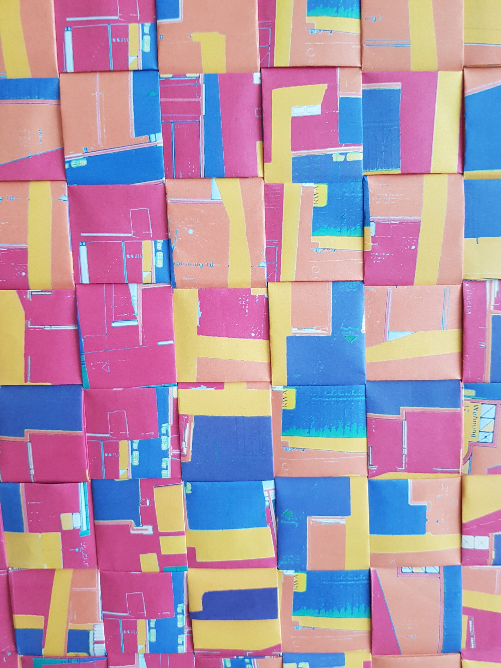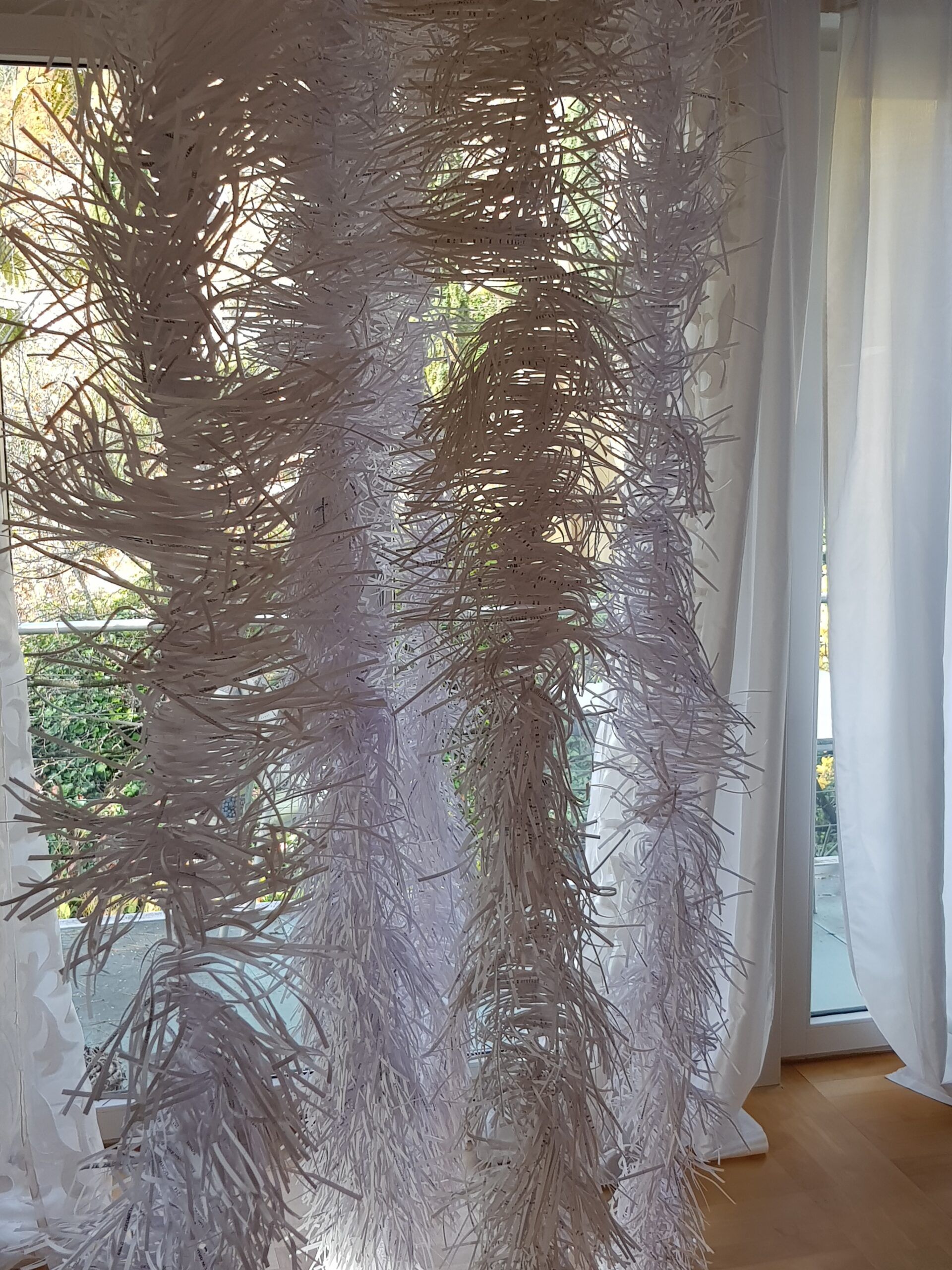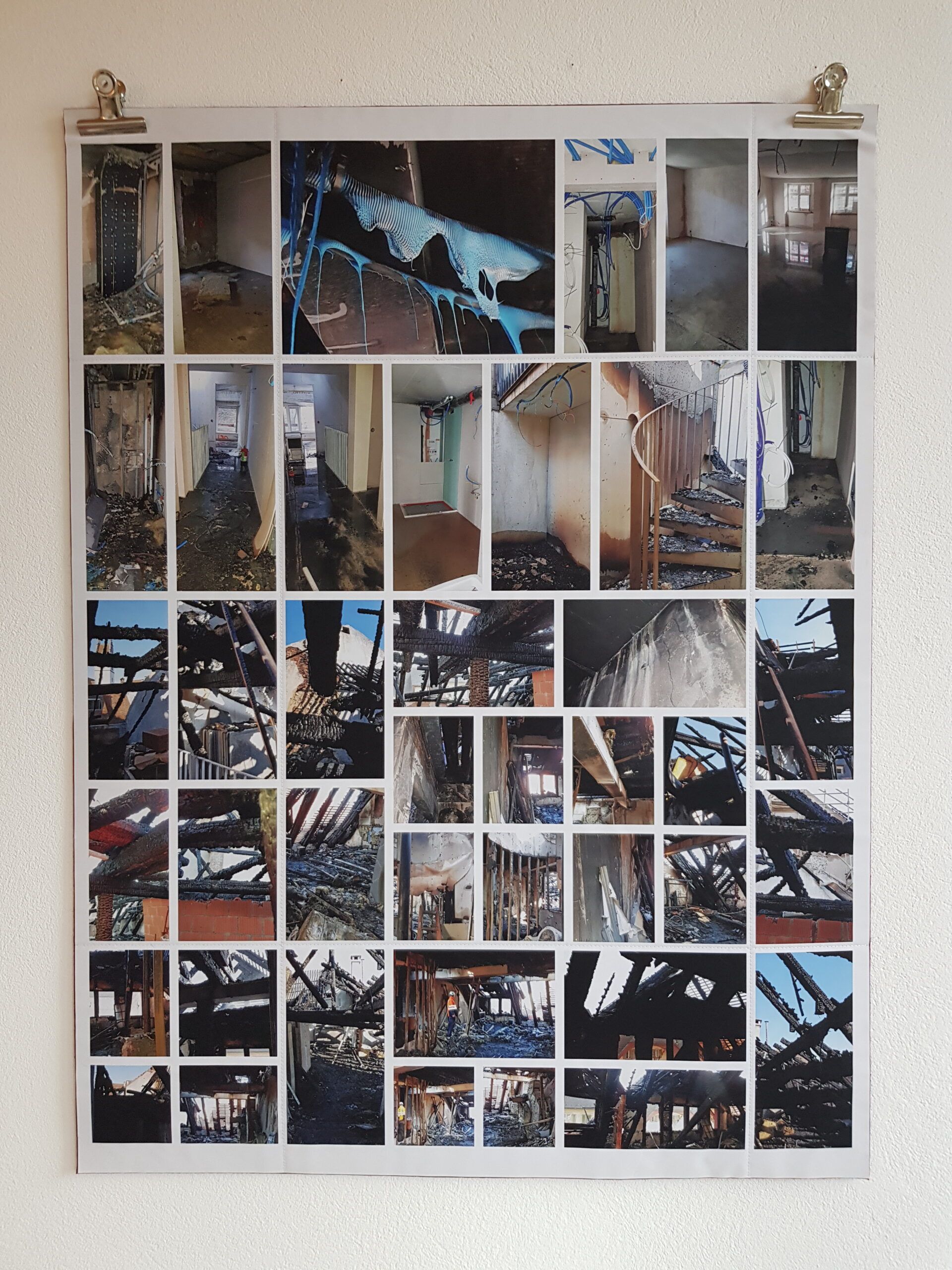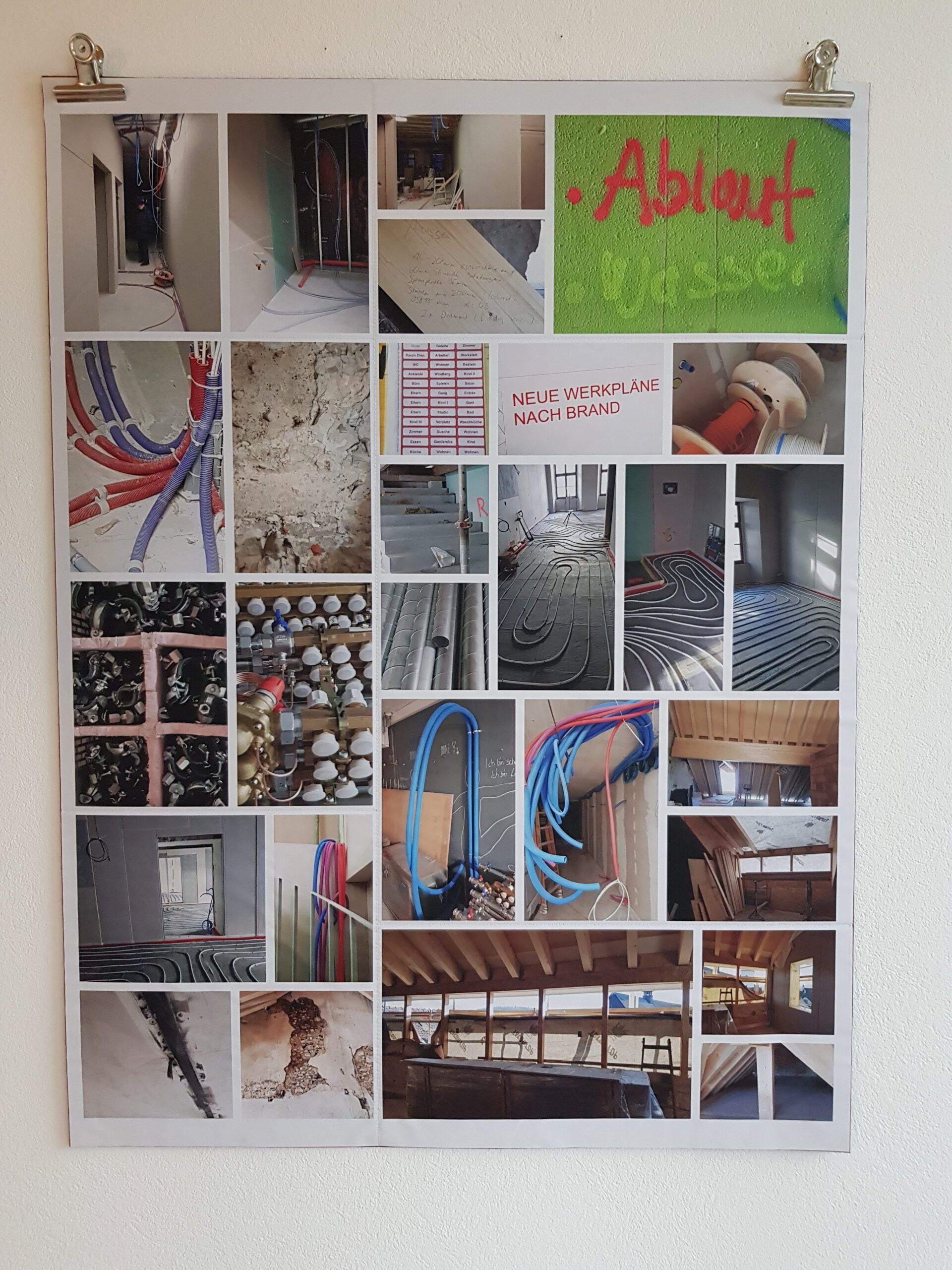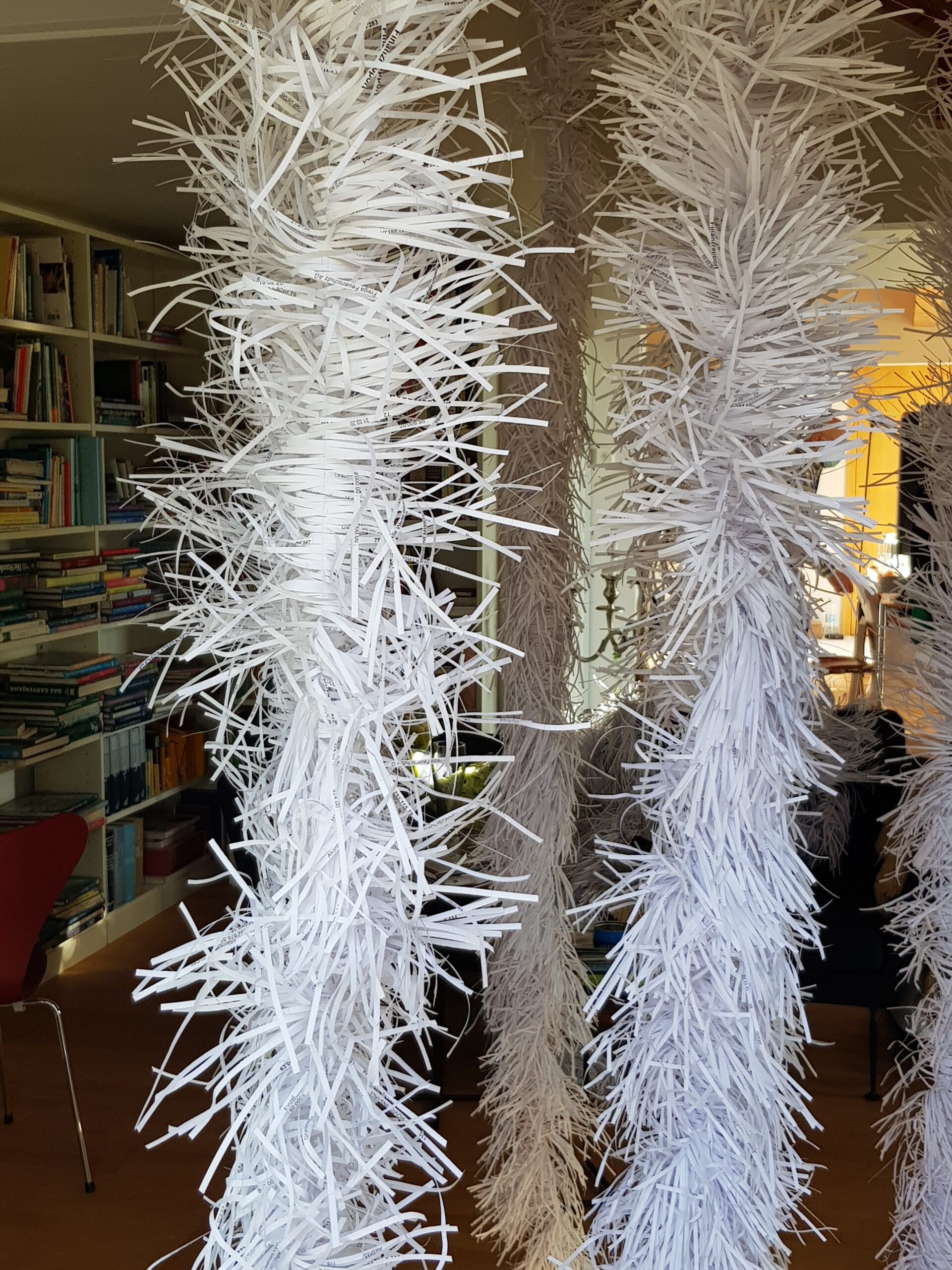 Installationen, Papierarbeiten, Textilbilder und eine Fotodokumentation des Umbaus.