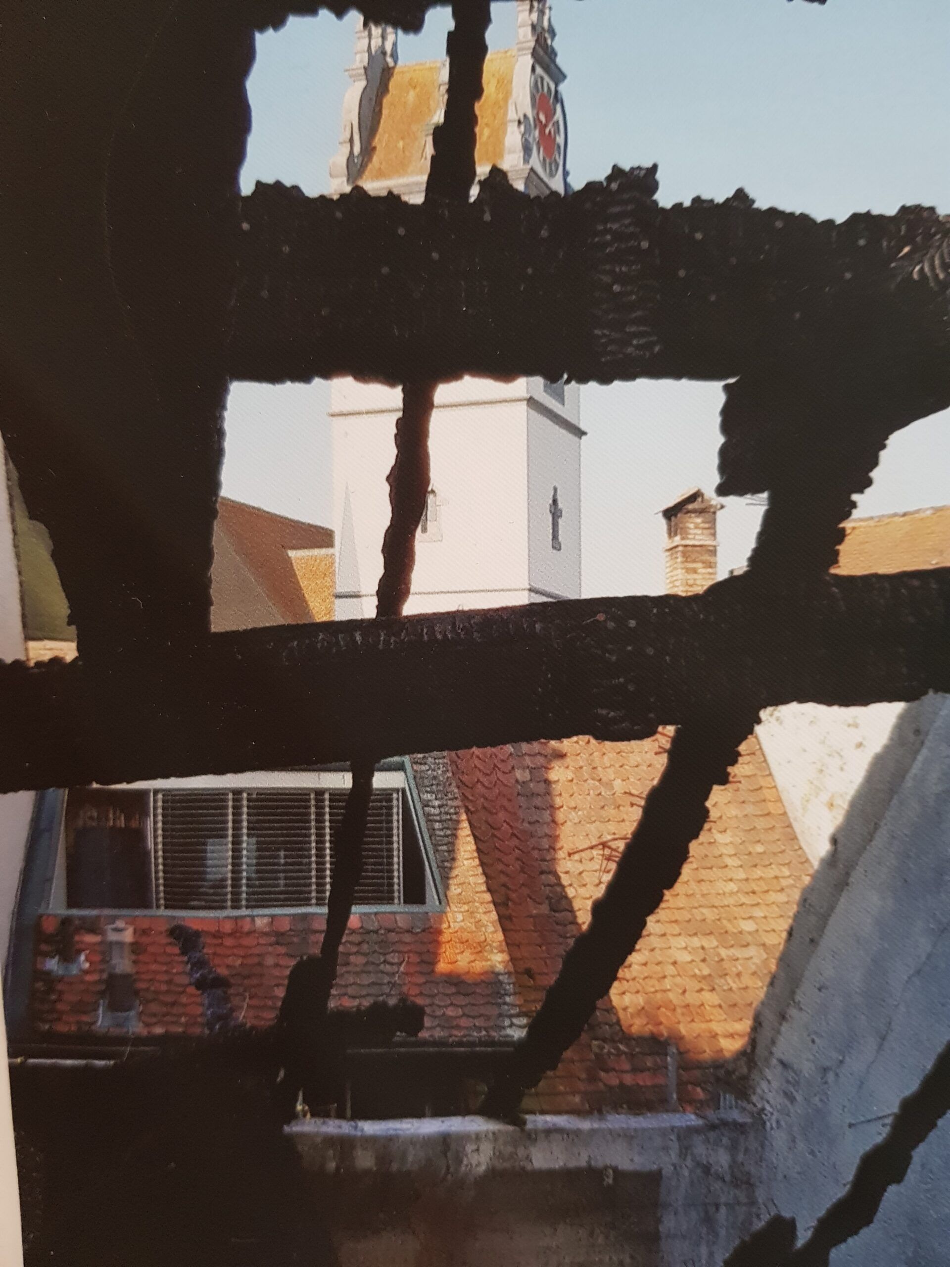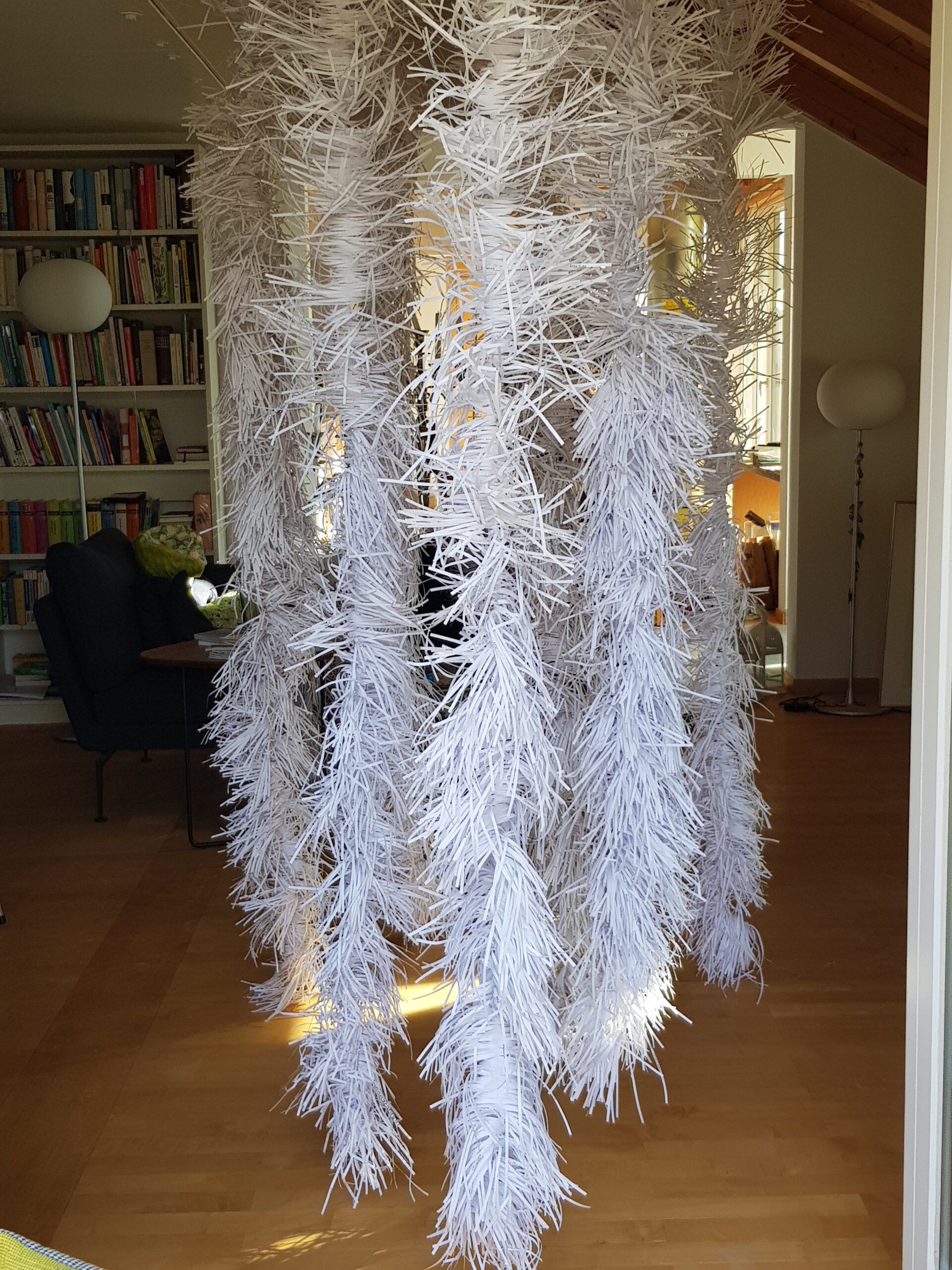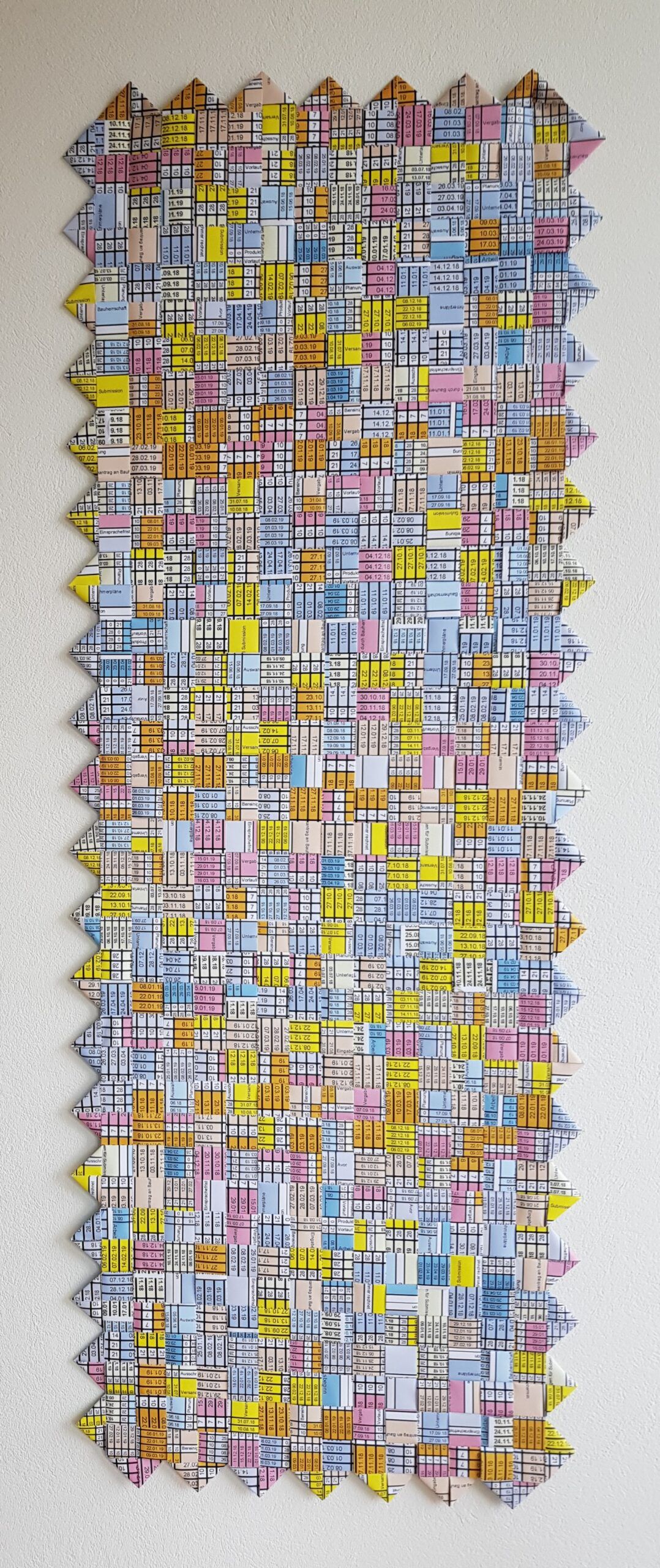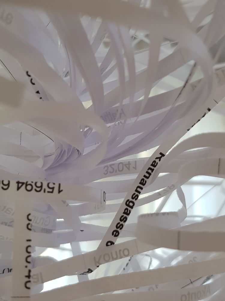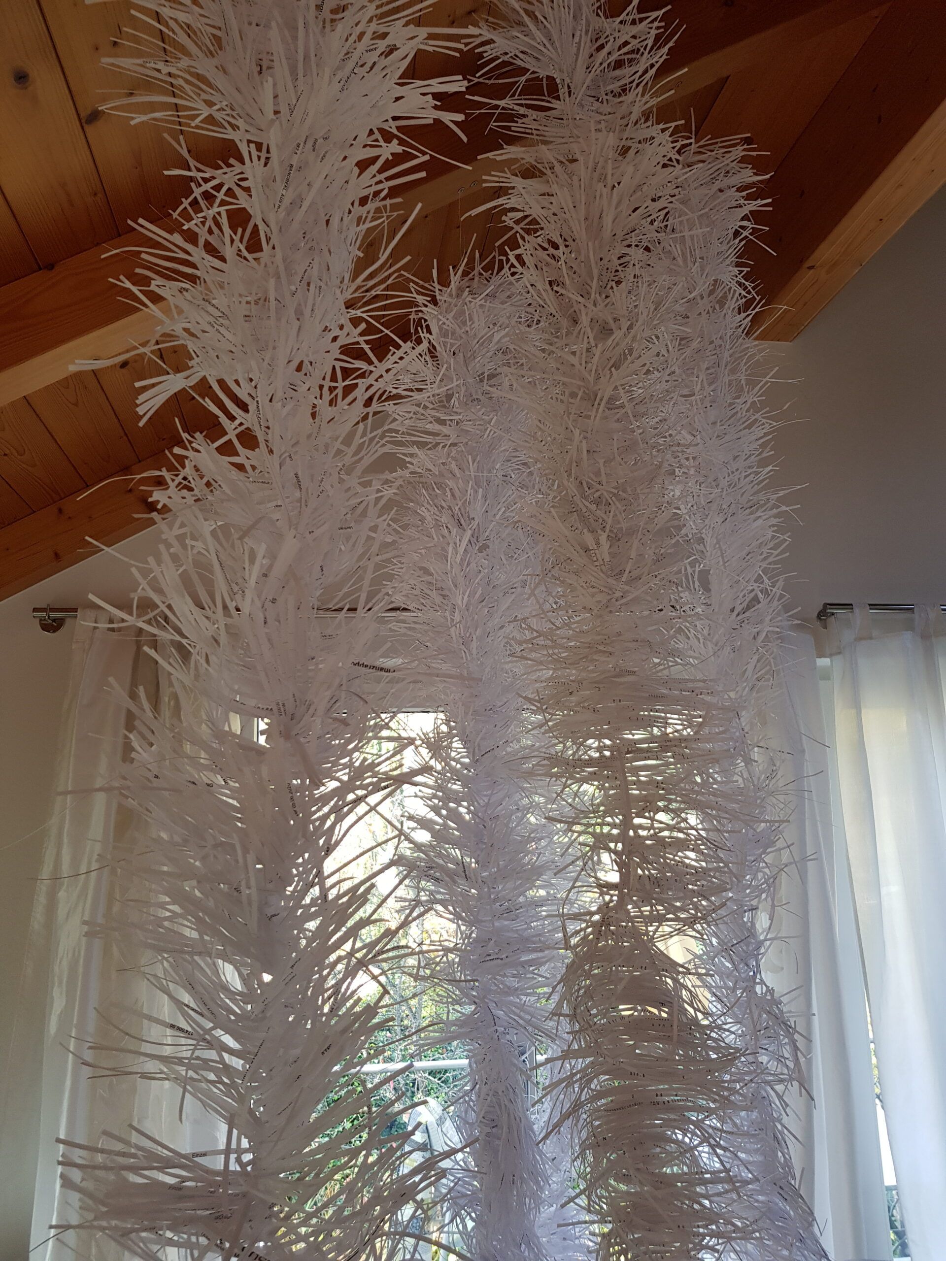 Installationen, Papierarbeiten, Textilbilder und eine Fotodokumentation des Umbaus.