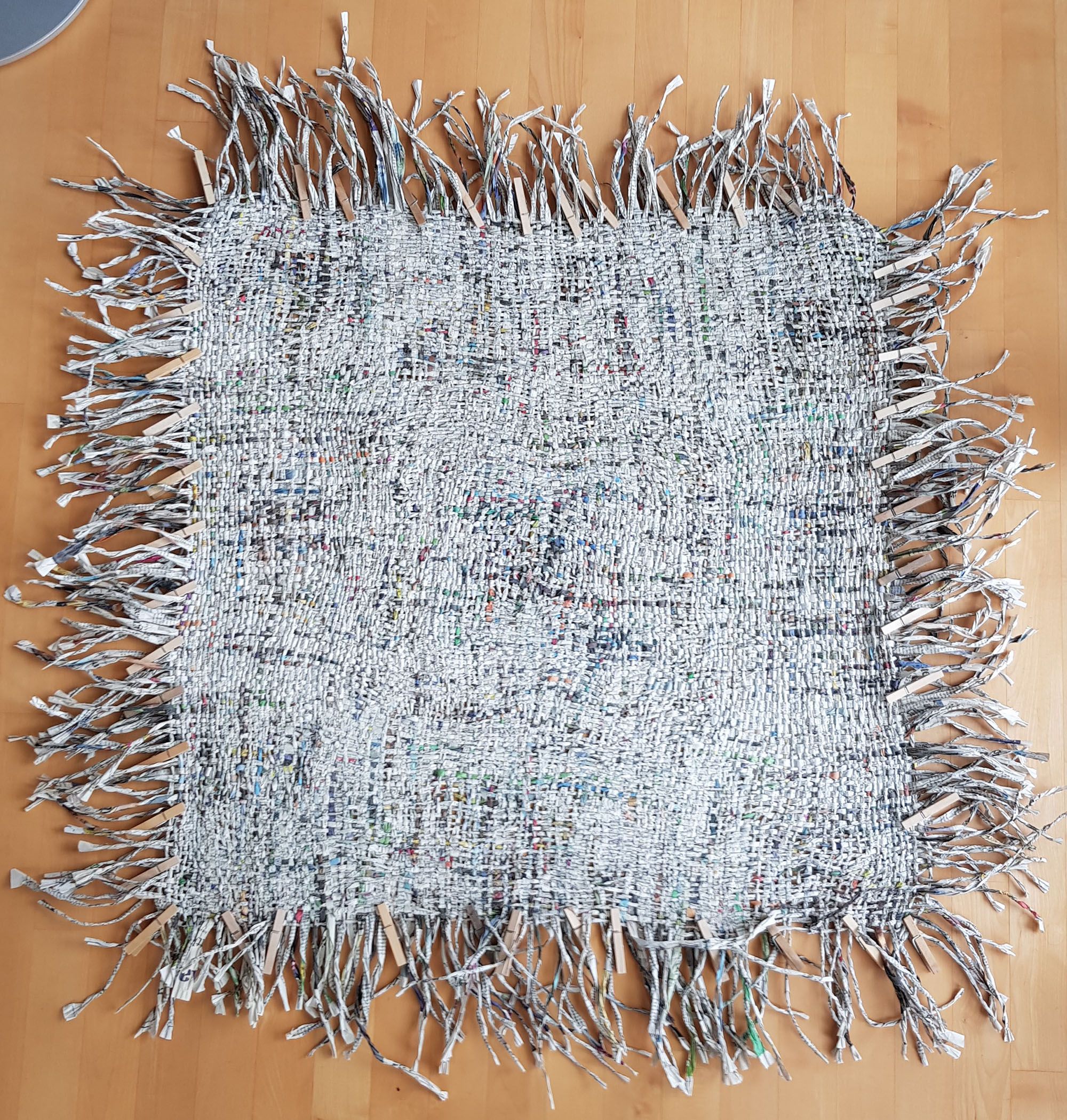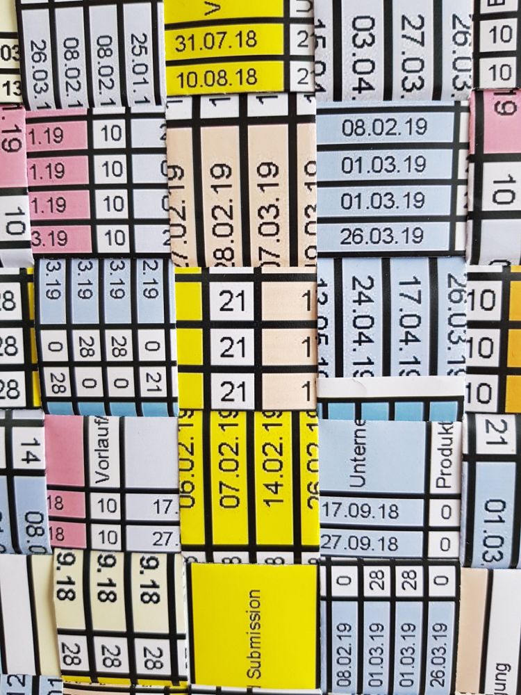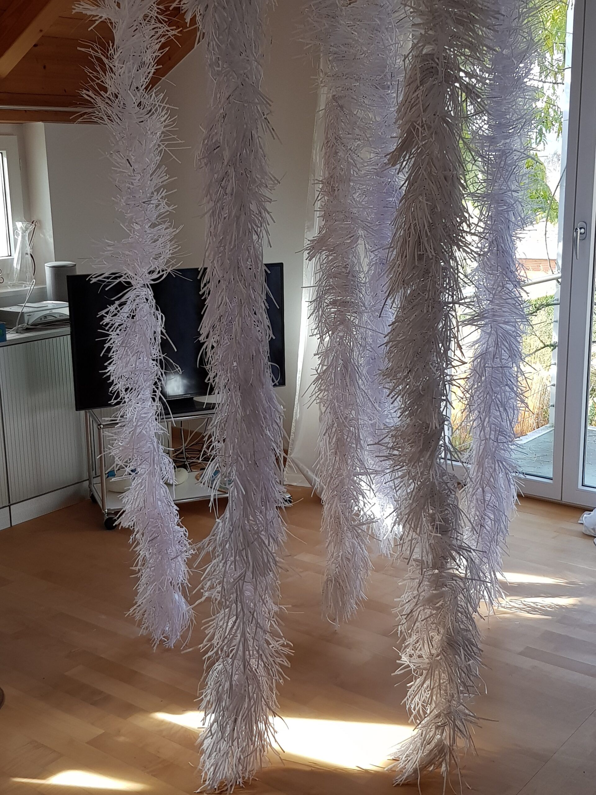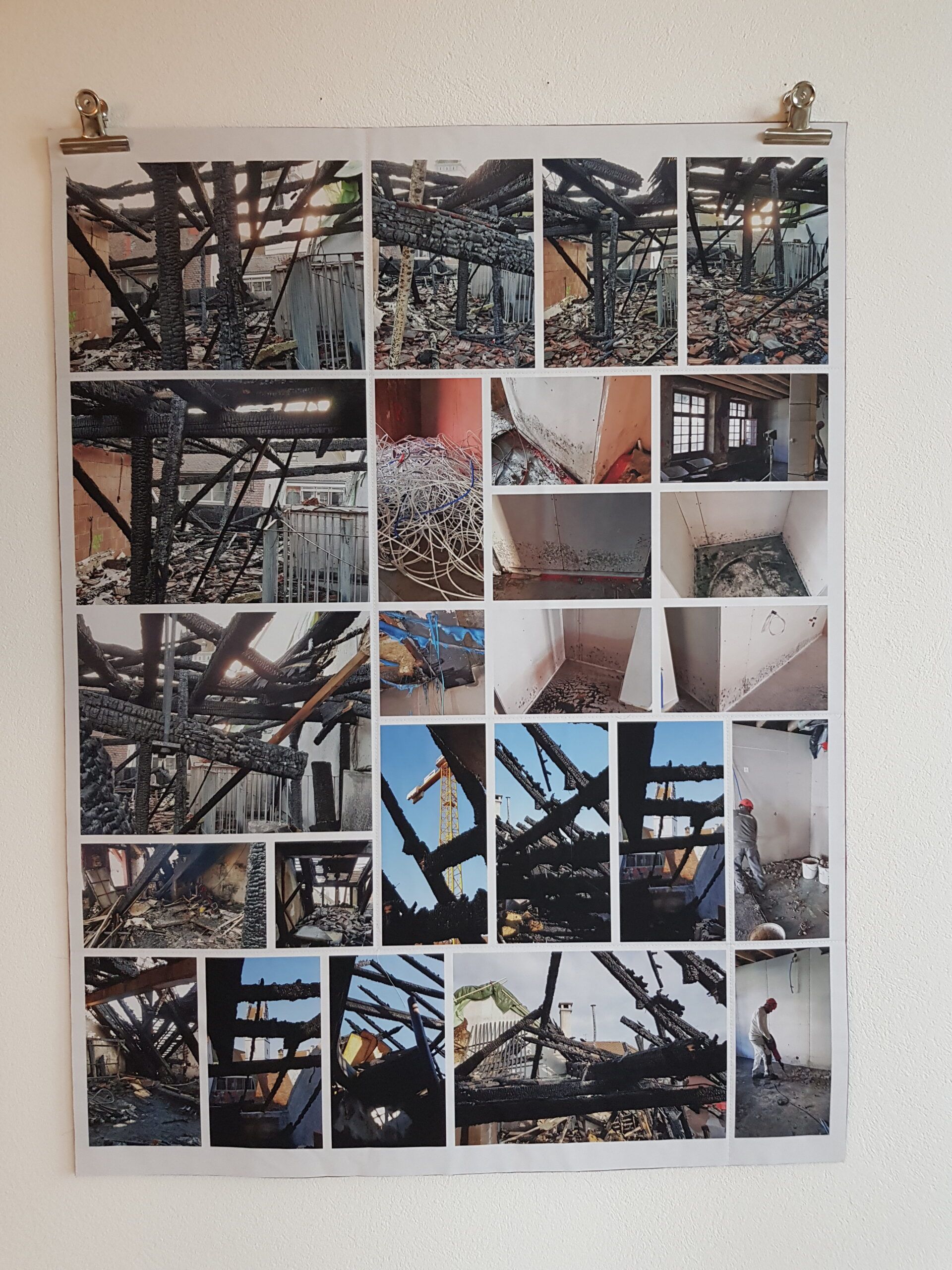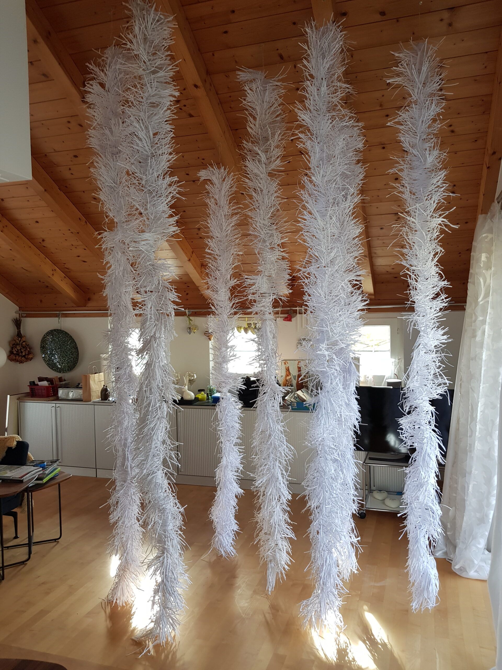 Installationen, Papierarbeiten, Textilbilder und eine Fotodokumentation des Umbaus.